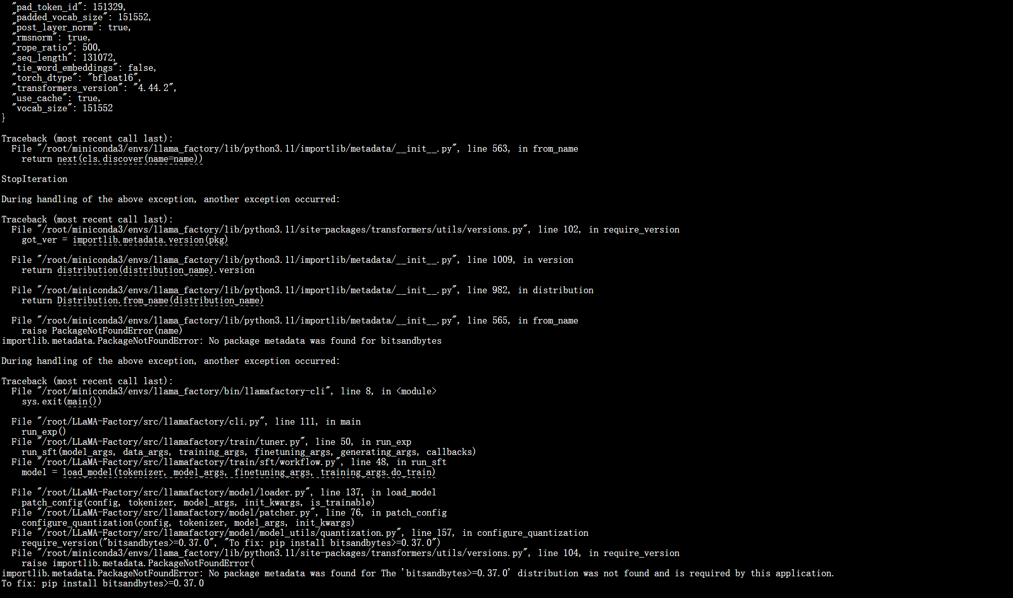 在做实验的过程中,在开启量化训练时,模型训练完毕后打算加载模型,但显示加载模型错误,这时回到终端,这里显示需要安装一个包,但是安装之后仍然无法加载模型。