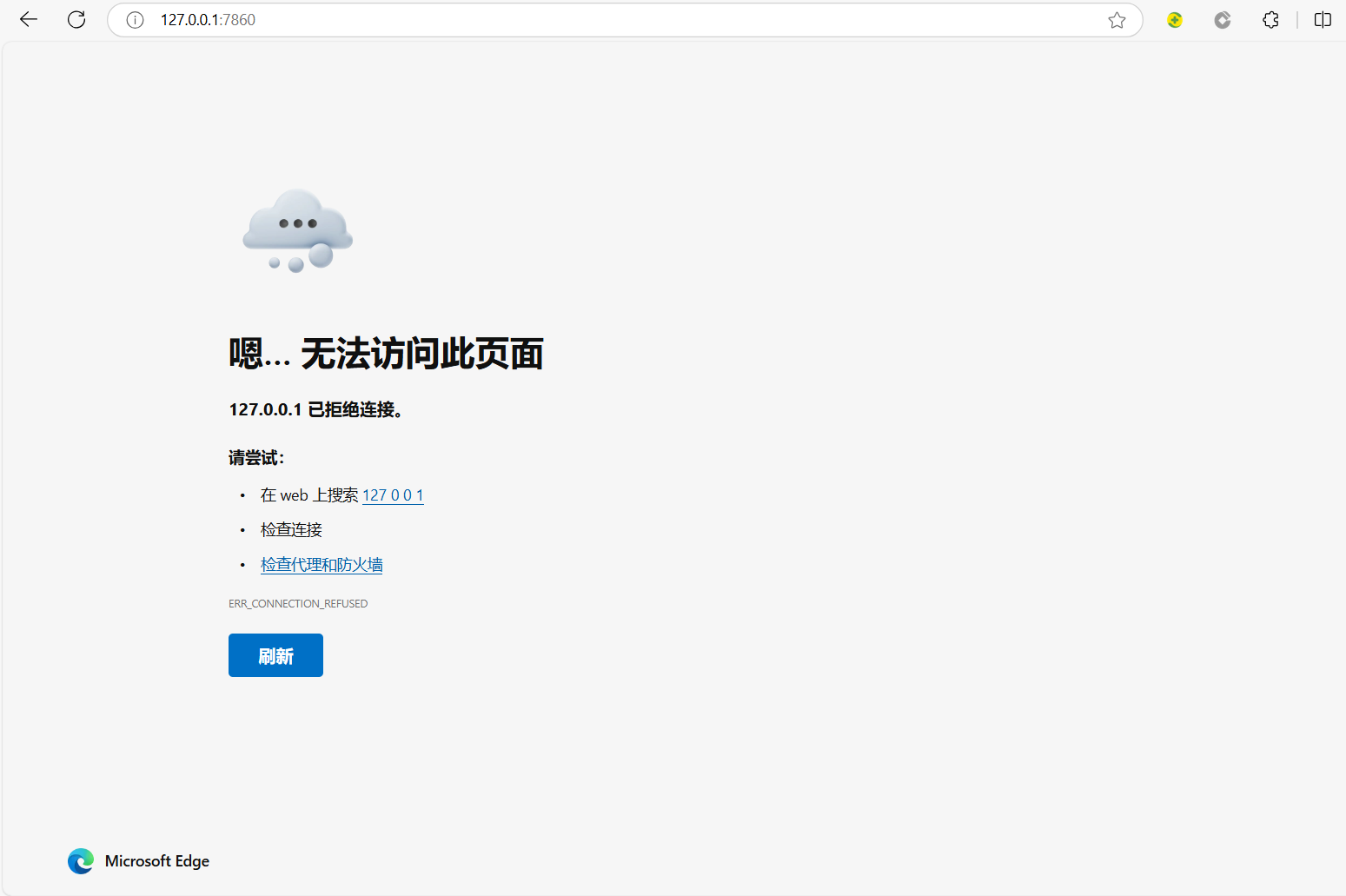 以下命令设置隧道,从输出信息看到设置也成功了,但是却无法访问http://127.0.0.1:7860/