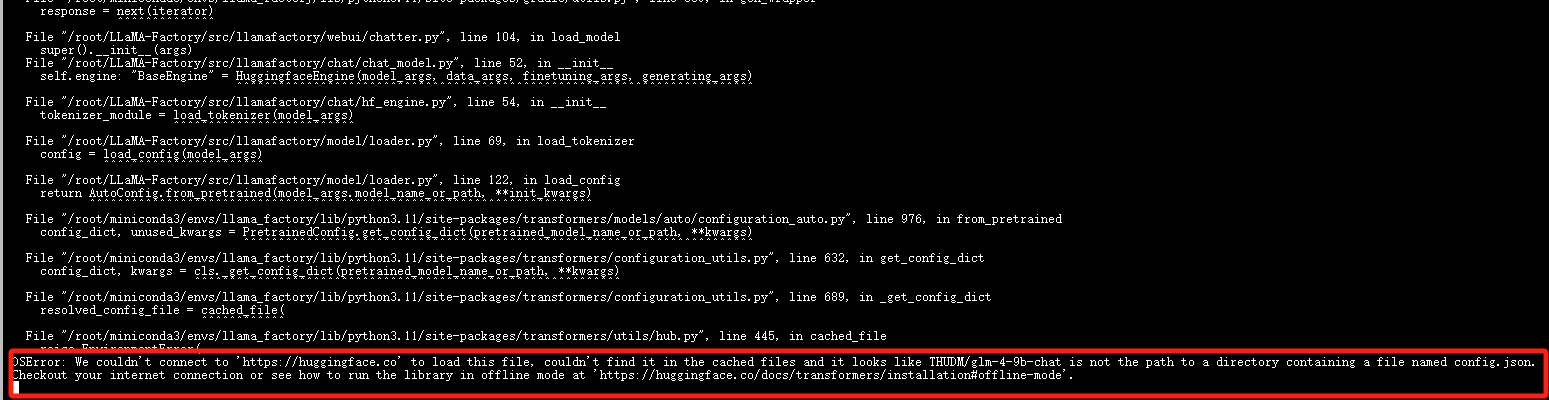 基于LLaMA-Factory的模型微调训练,拉大模型报错,帮看下问题在哪里?