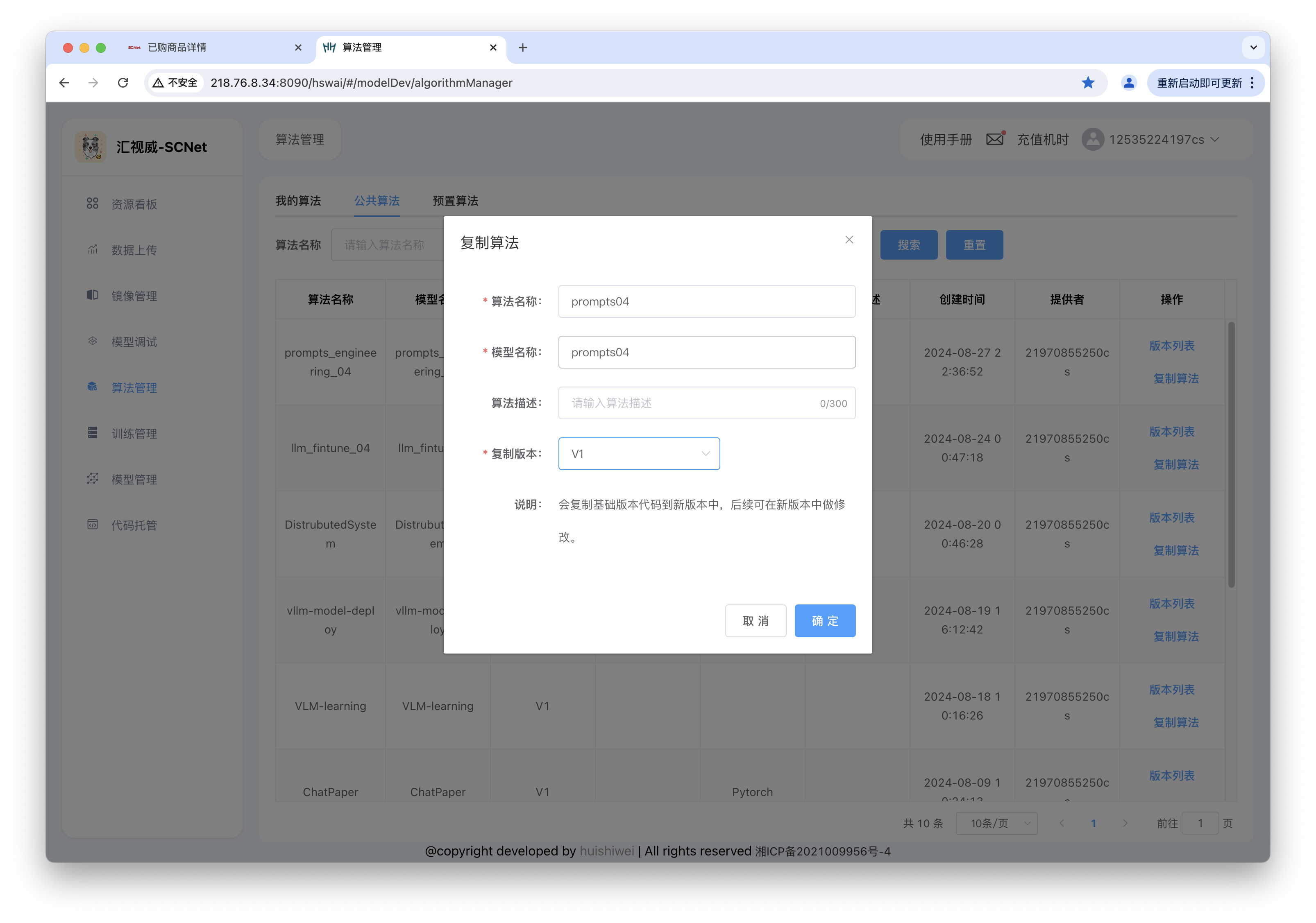 step1: 复制在公共算法prompts_enginnering_04,此处将复制的算法重命名为prompts4