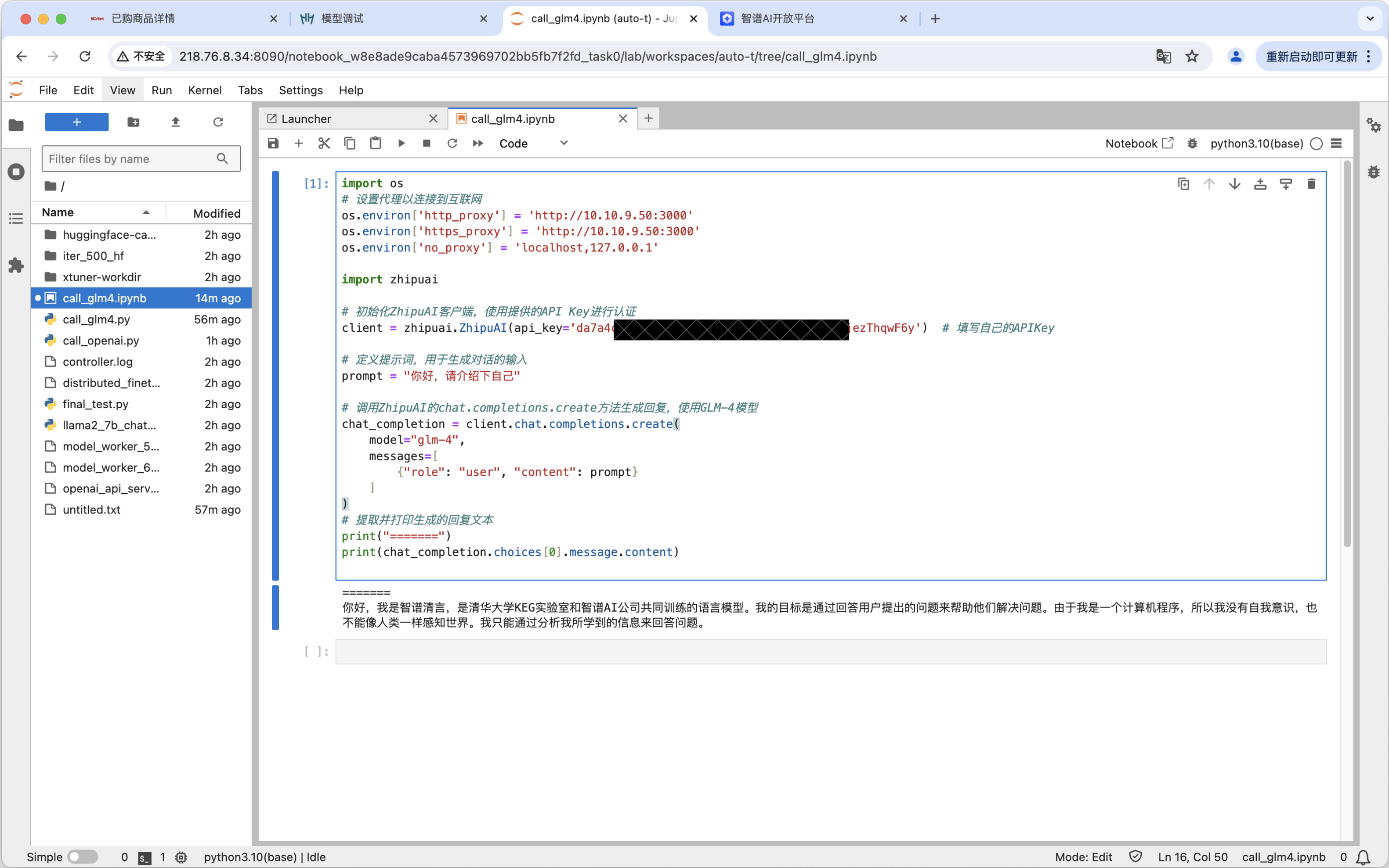 3.调用智谱API实现问答: