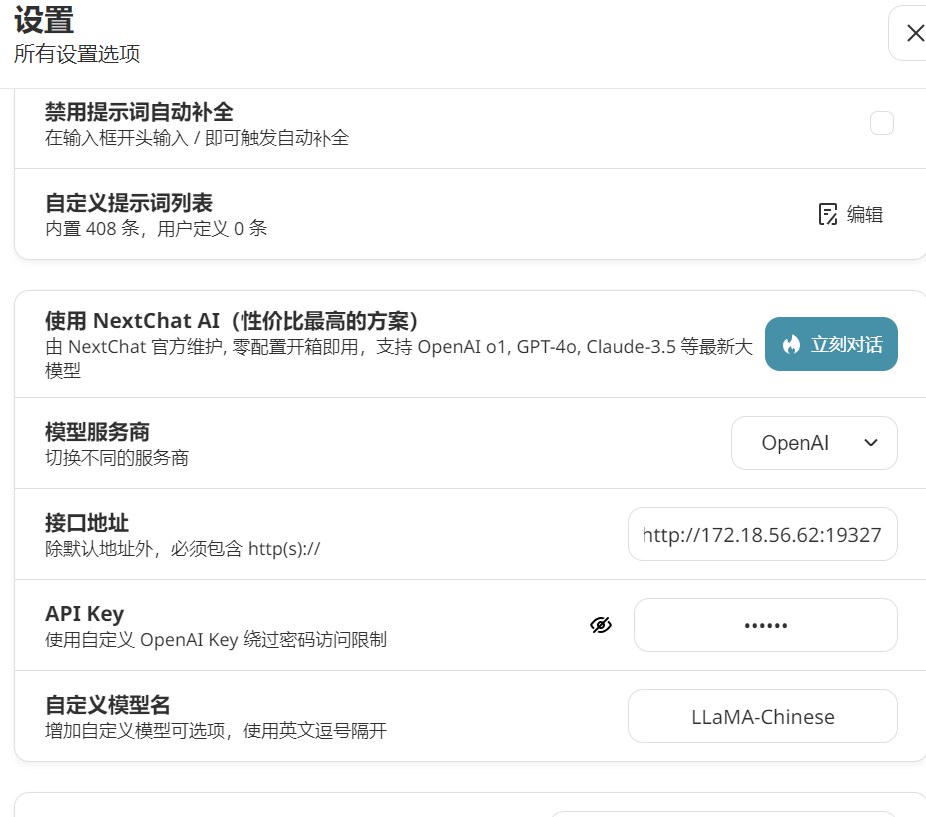 Chinese-LLaMA-Alpaca-3本地构建API可调用,但NextChat无法正常调用 #206