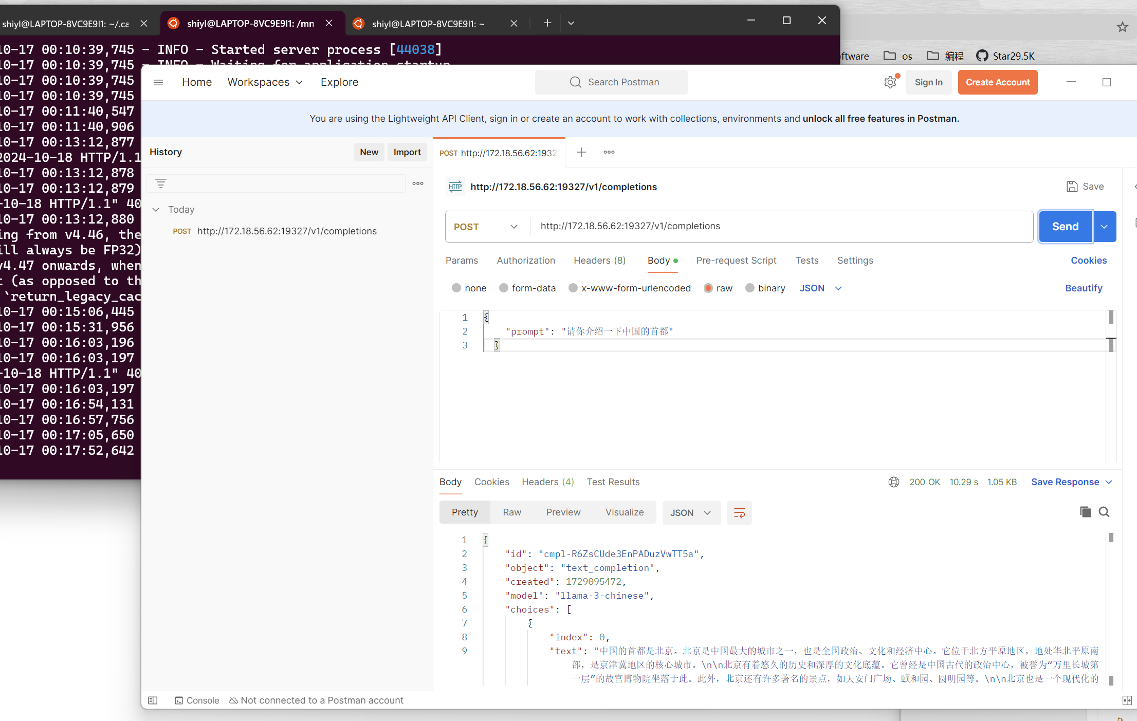 我的接口地址是这个:http://172.18.56.62:19327/v1/completions