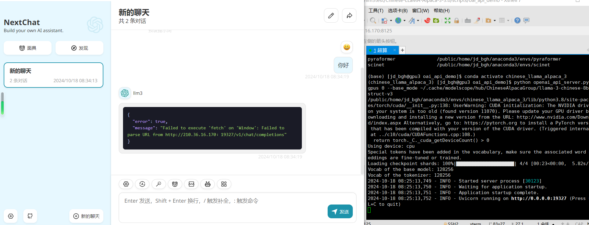 【求助帖】2024/10/16,Chinese LLaMA Alpaca系列模型 -NextChat连接不上我的服务器 #224