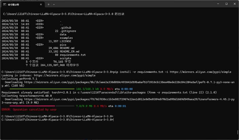 【求助贴】requirements.txt文件已存在Chinese-LLaMA-Alpaca-3-3.0目录下但是依旧无法运行。 #231