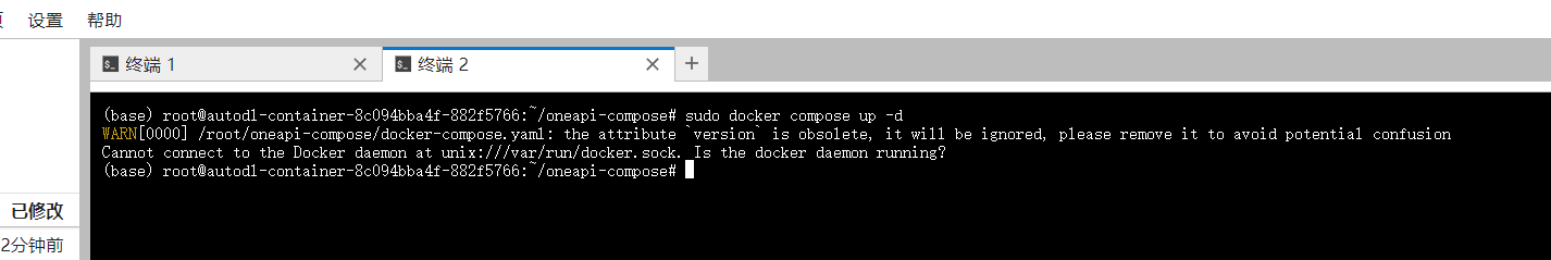 在按照教程安装完docker,和oneapi,然后输入sudo docker compose up -d