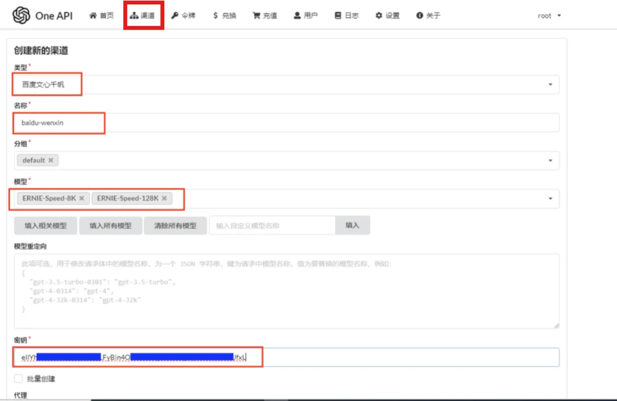 首先,在OneAPI渠道里确认已选中这两个模型:ERINE-Speed-128K与ERINE-Speed-8K。