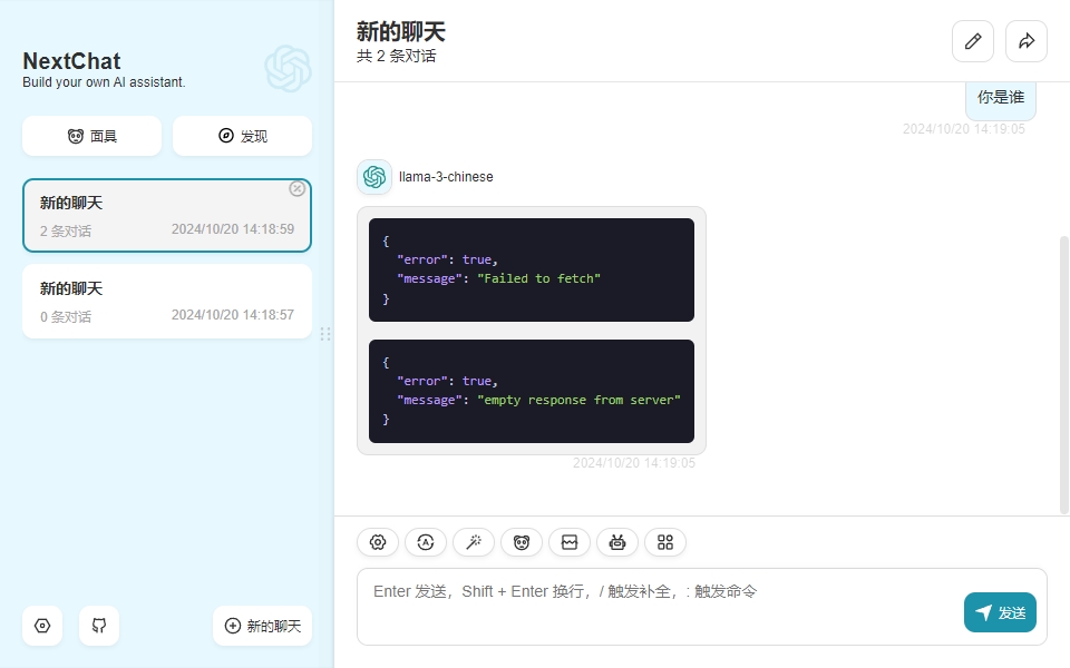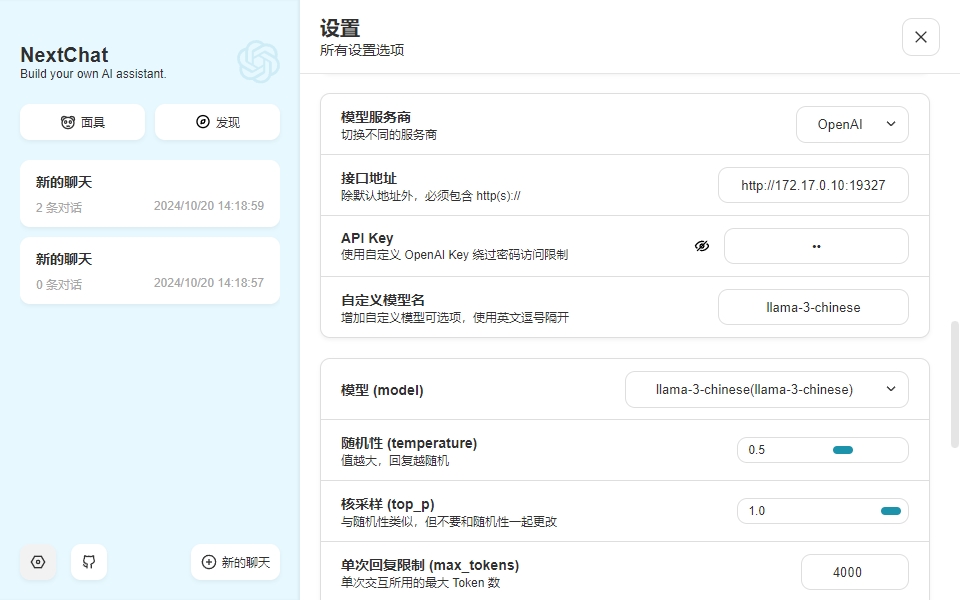 LLama3仿OpenAI实验,命令行测试成功,但是NextChat不行 #241
