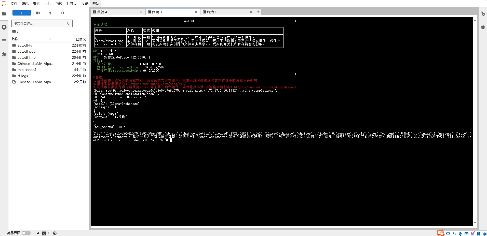(base) root@autodl-container-eded47b3e0-b7a6df75:~# curl http://172.17.0.10:19327/v1/chat/completions