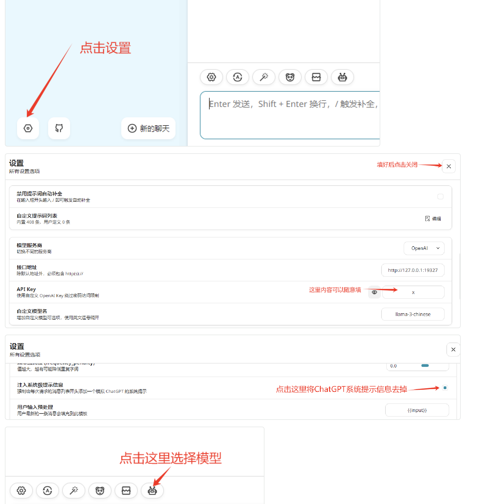 需要确认一下两个信息:1.安装nextchat的电脑是否可以访问图中的10.21.76.115服务器,2.检查一下nextchat有没有按课程文档正确配置了