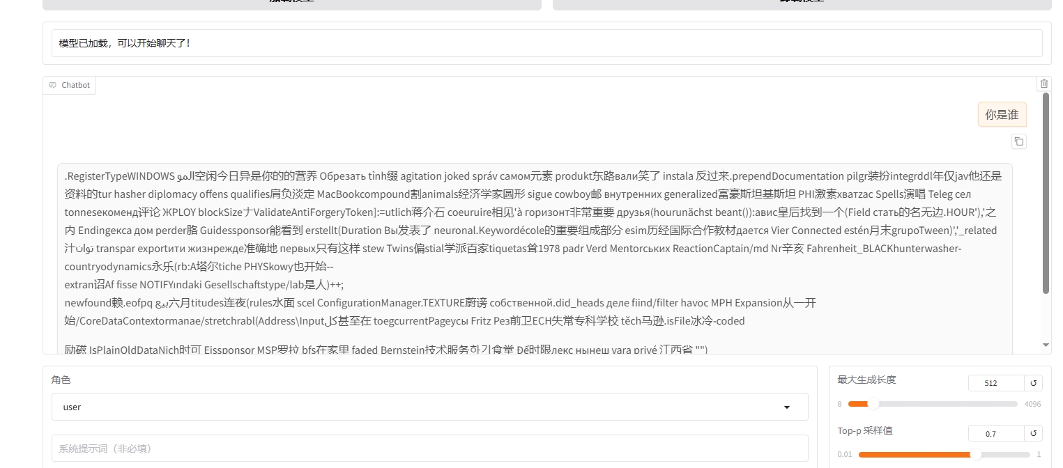 按照教材和老师数据以及步骤,微调时始终没有出现曲线,从后台来看似乎没有问题,调整了训练轮数和学习率都没有效果,chat时明显看出数据被污染了,模型回复完全不对。不知道要怎么处理