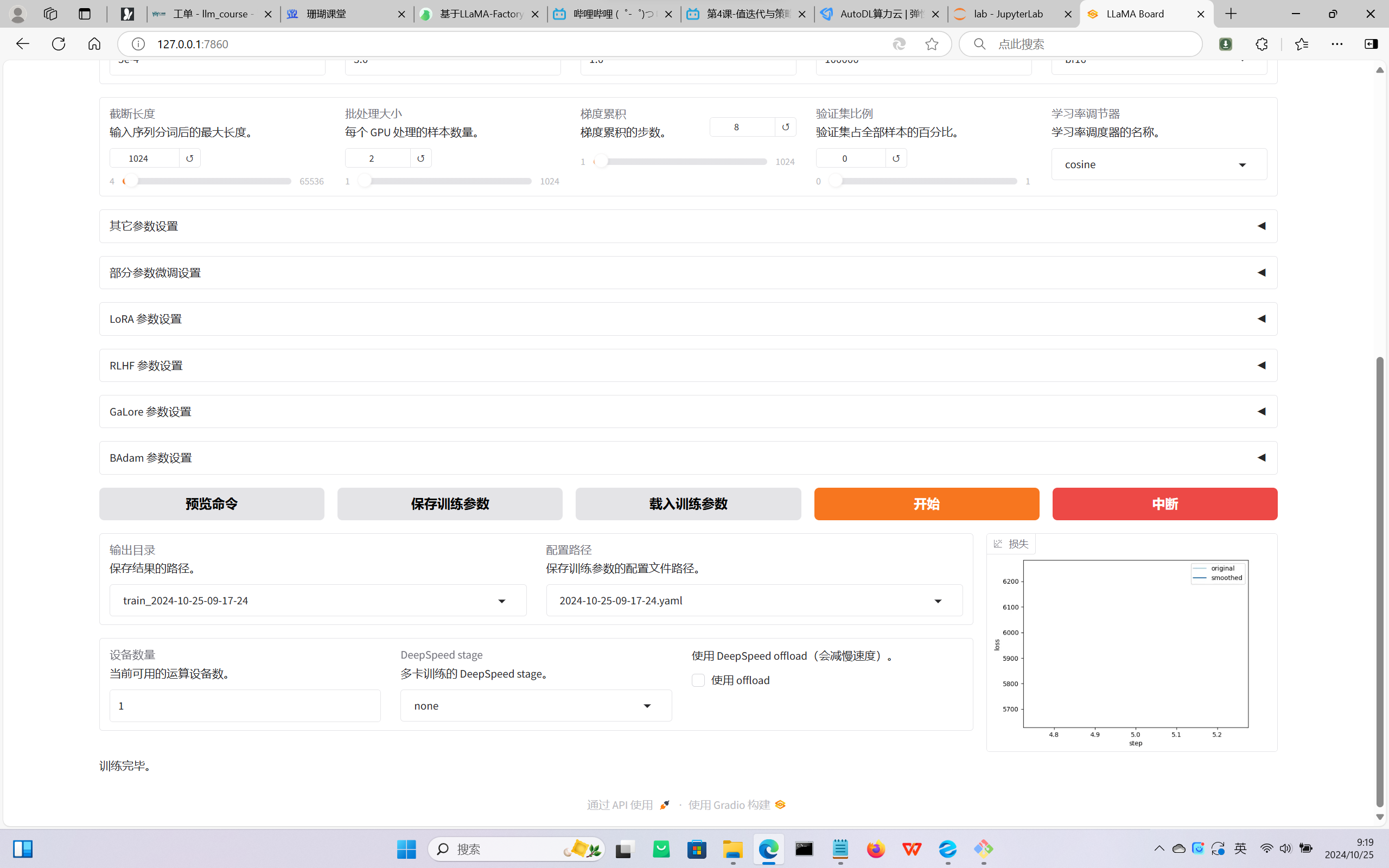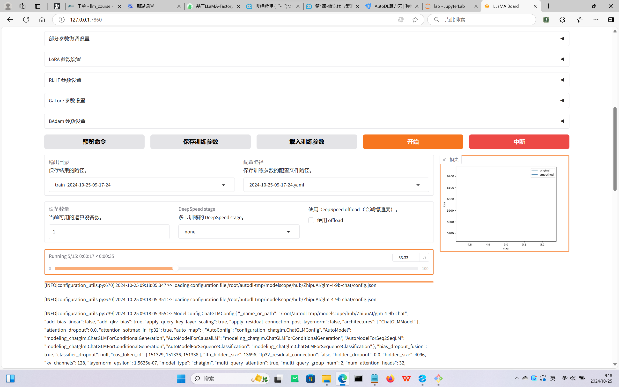我也是同样的问题,步骤都和文档一样的做,体现为这里的损失曲线没有,且纵坐标特别大,我看老师视频中是1.x,还有就是加载微调后的模型,回复胡言乱语。