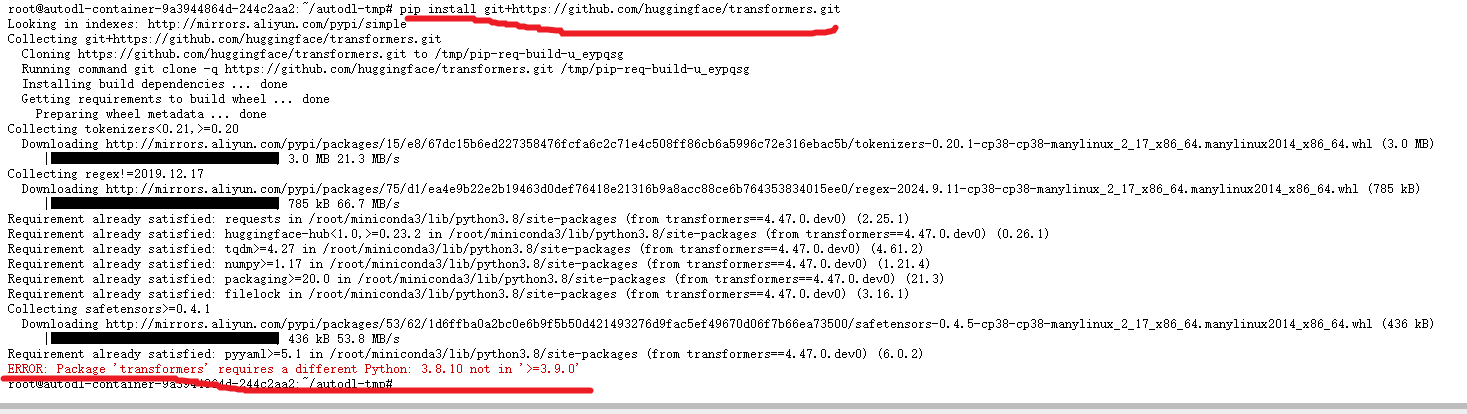 【求助帖】多模态课程安装transformers报错 #289