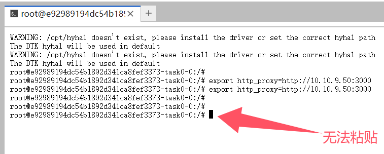 多机多卡训练中,在jupyterlab的终端中,不能右键粘贴相关命令,使用Ctrl+V快键可以粘贴,但却无法执行命令,情况如下截