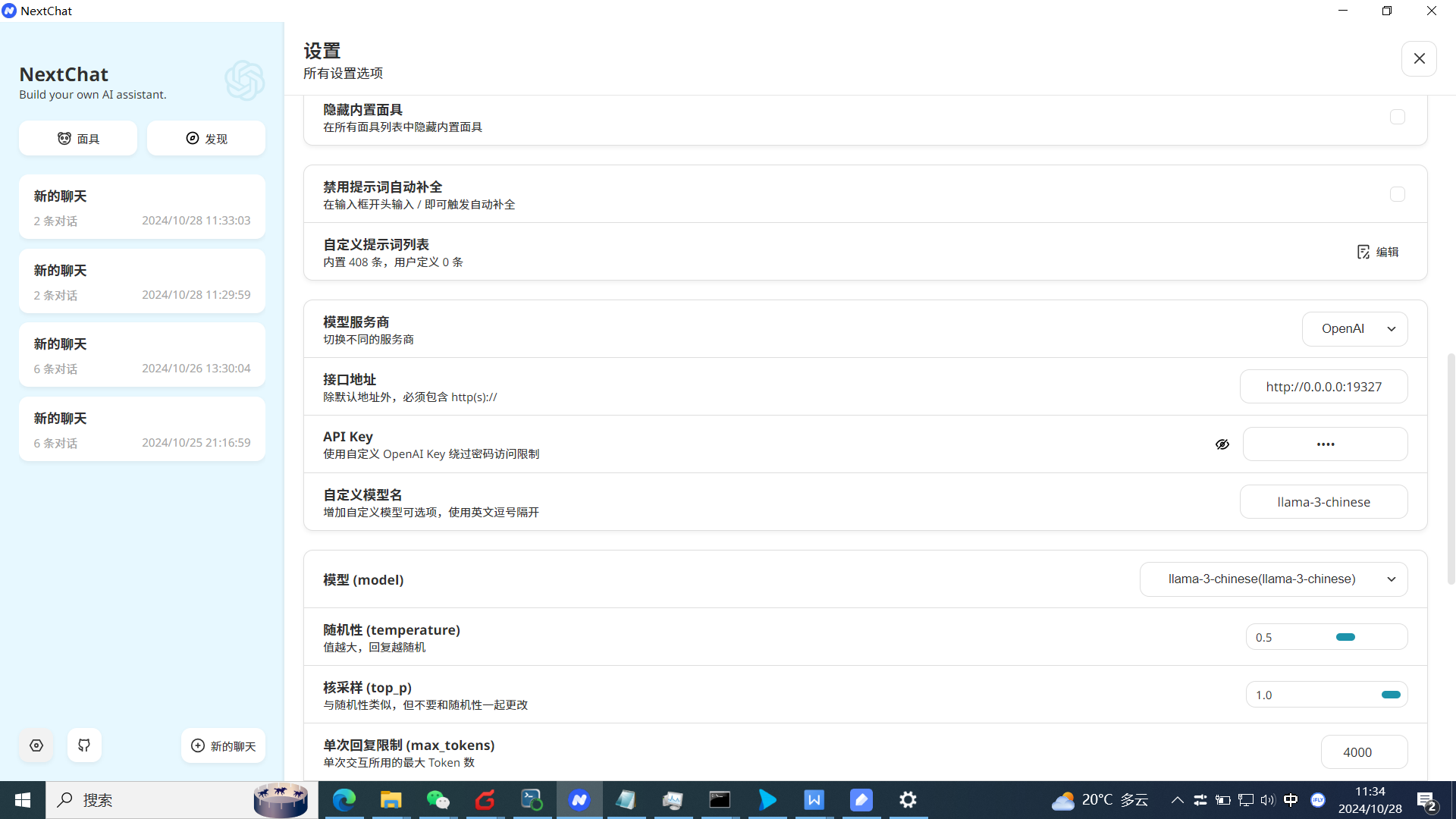 刚跑起来了,但是客户端提示还是有问题,我看NEXTCHAT 配置也是正确的。请问是什么原因