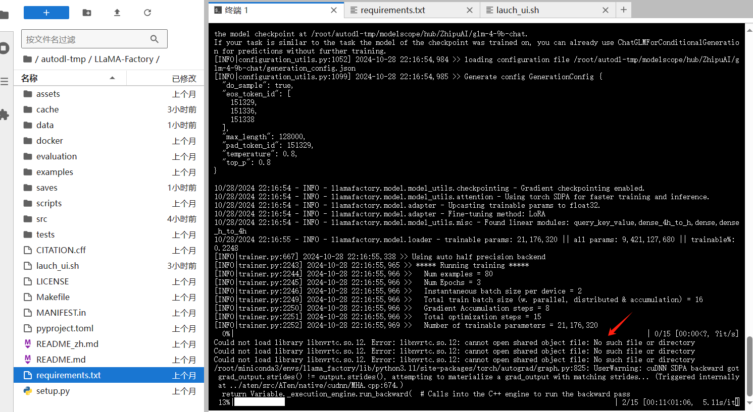 请问是怎么解决的呀?我也遇到这个问题,我按requirments.txt安装了工具包 都还是一样的问题。我在微调的时候主要报错代码是找不到什么文件