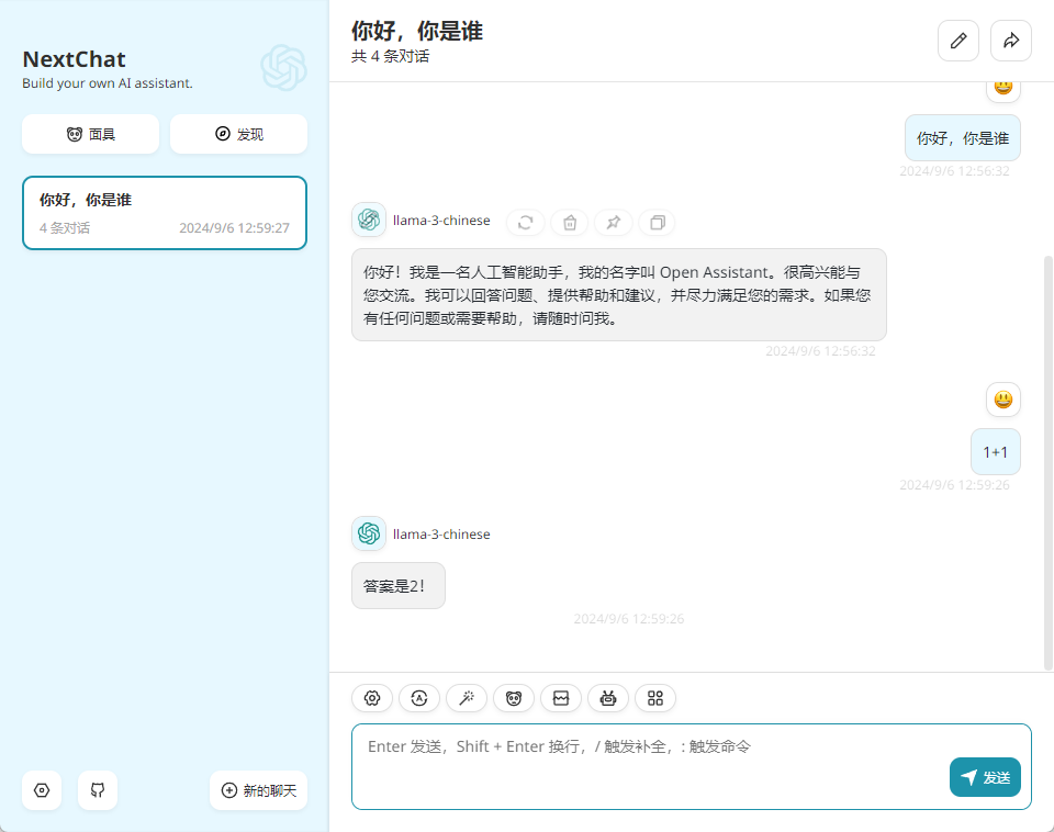 完成本次实验的本地化部署及客户端演示,能够调用 llama3 本地模型进行智能问答(应用时无网环境);