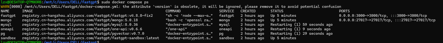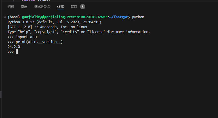 docker-compose.yml和config.json文件也是按要求准备在了fastgpt目录下,这个attrs包我使用pip和conda安装都成功了,尝试输出也是存在的,但是还是出现第一张图所示的报错,求助!