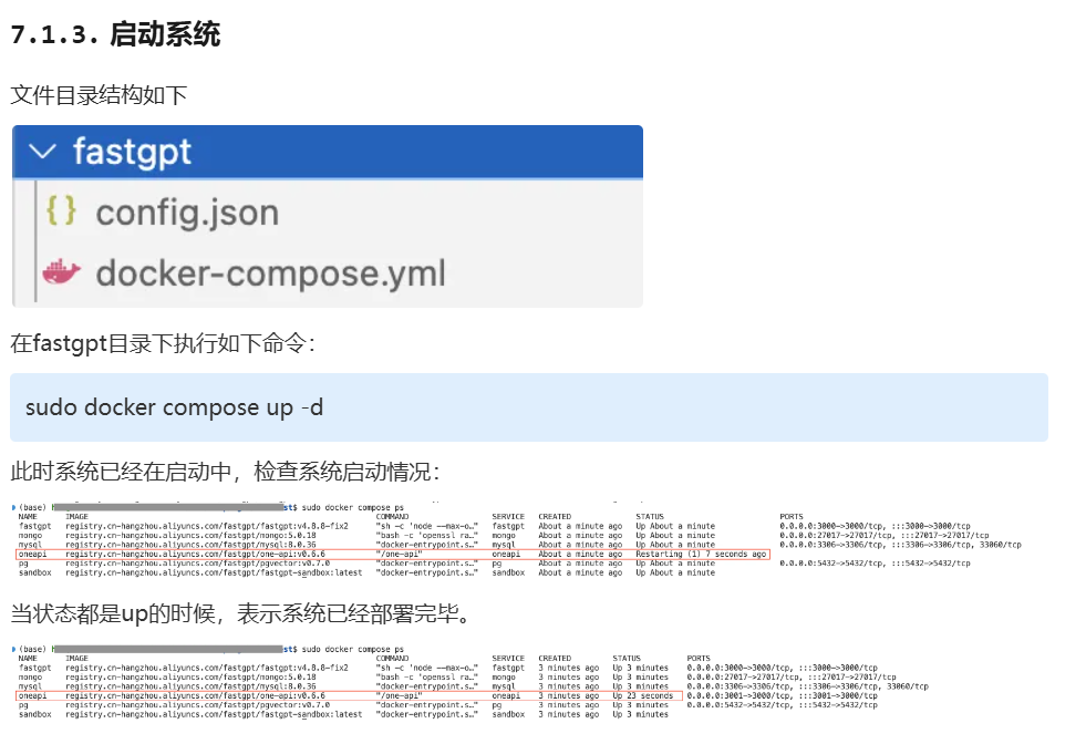 我这里在安装OneAPI 与 FastGPT部分也出现了如下报错,
