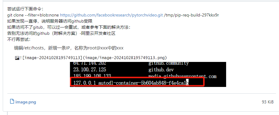 这就是访问不了github的错误,我也是遇到的这个,按照上面发的试试吧,这个比较玄学,如果还是不行,建议新换一个容器,先测试一下git clone能不能访问Github