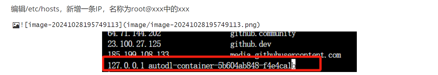 编辑/etc/hosts,新增一条IP,名称为root@xxx中的xxx