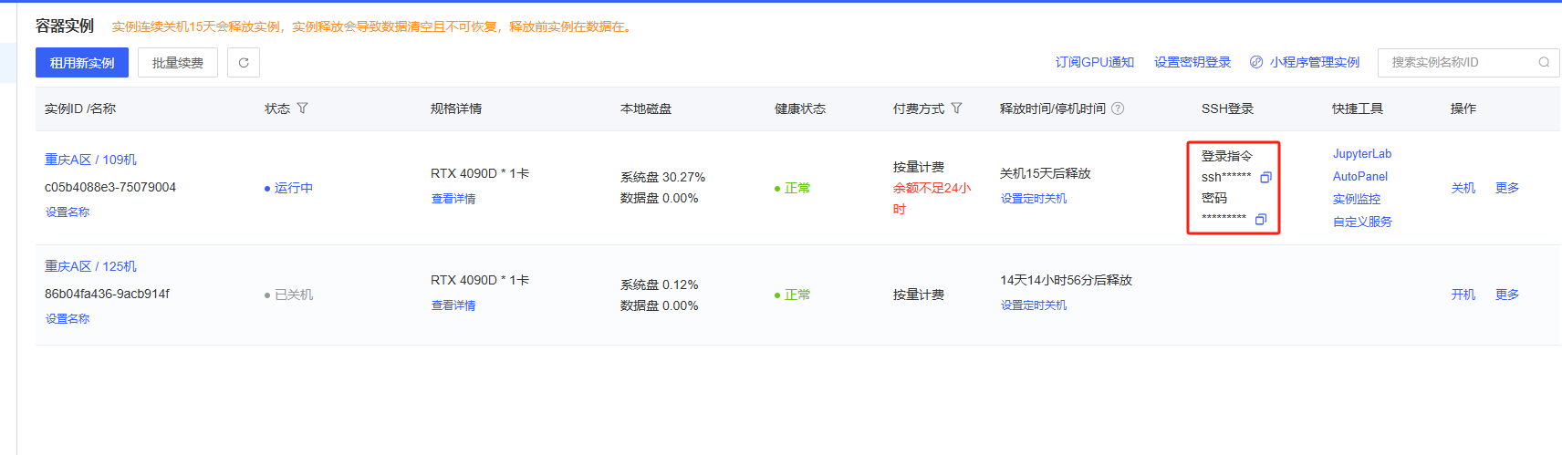 部分对于每个服务器都是不同的,你可能需要在当前使用的实例的这个部分取得你需要的服务器账号密码和端口