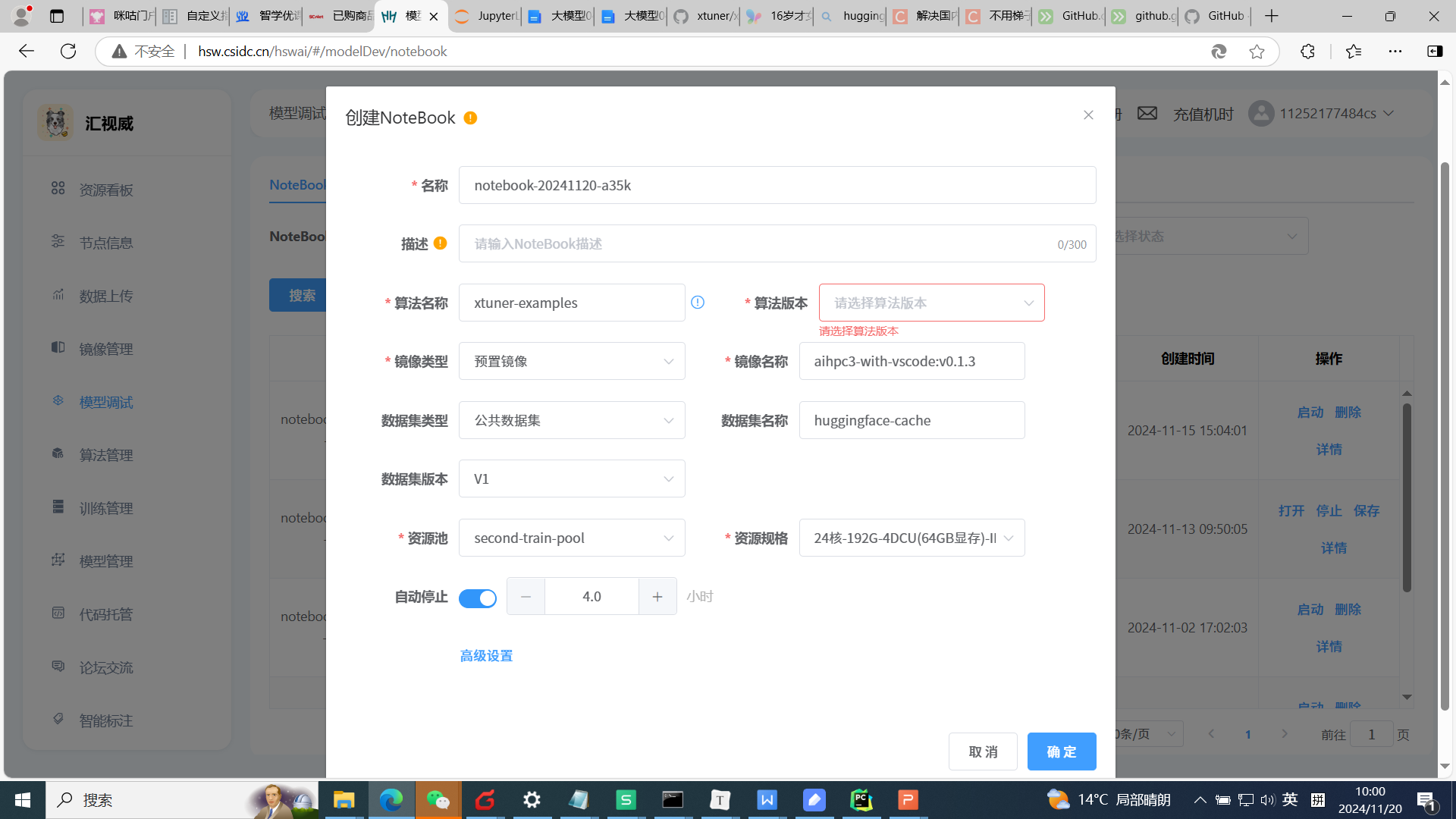 大模型04期使用xtuner微调开源大模型,创建xtuner模型训练报错,无法选择算法版本