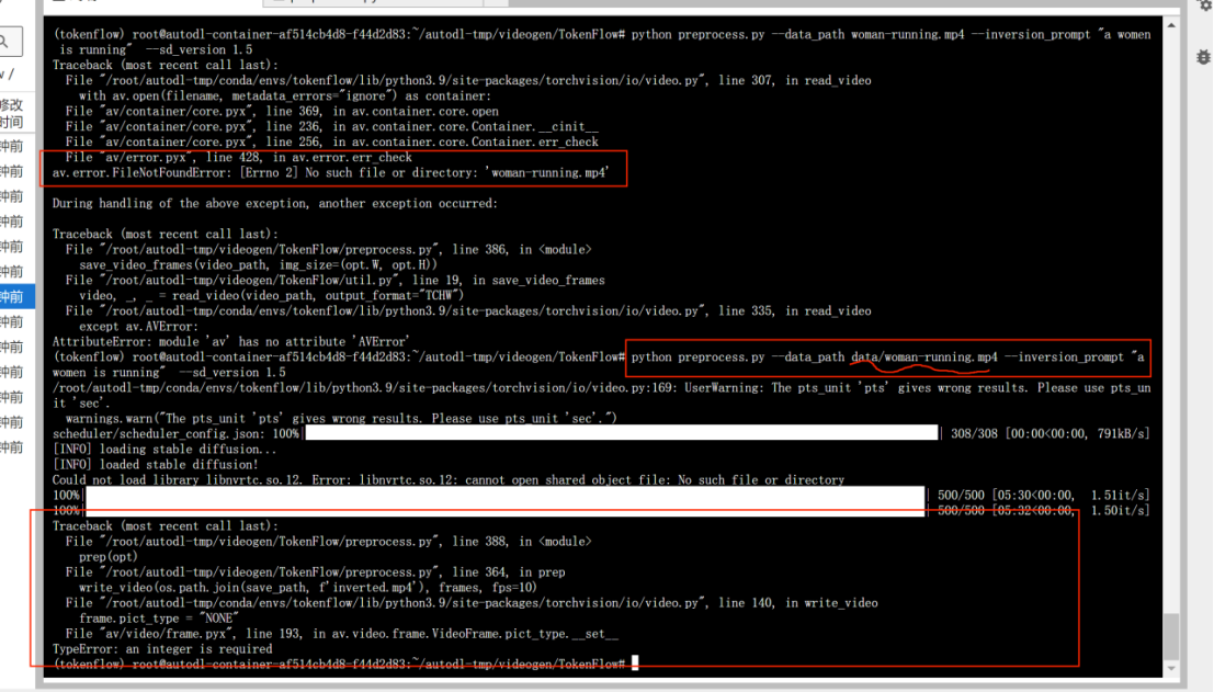 求助20241130视频生成模型部署过程中部署示例(TokenFlow)运行示例报错 #409