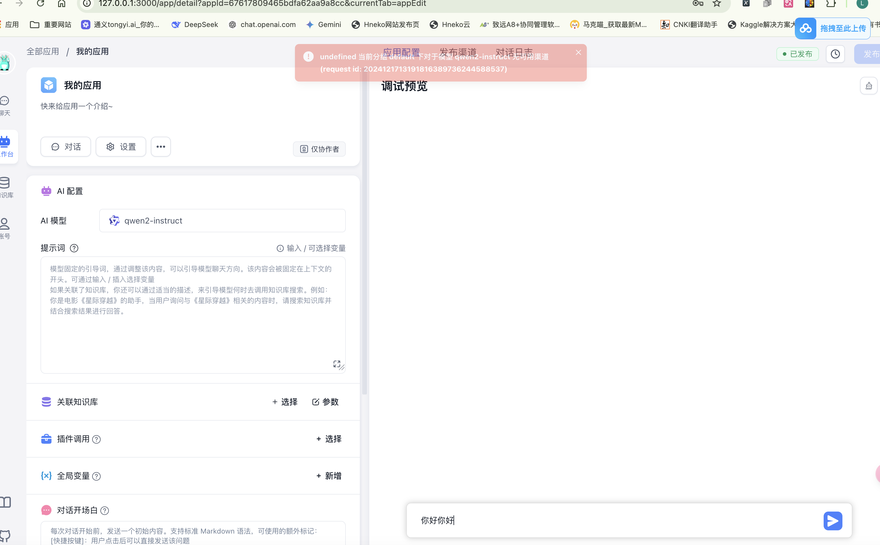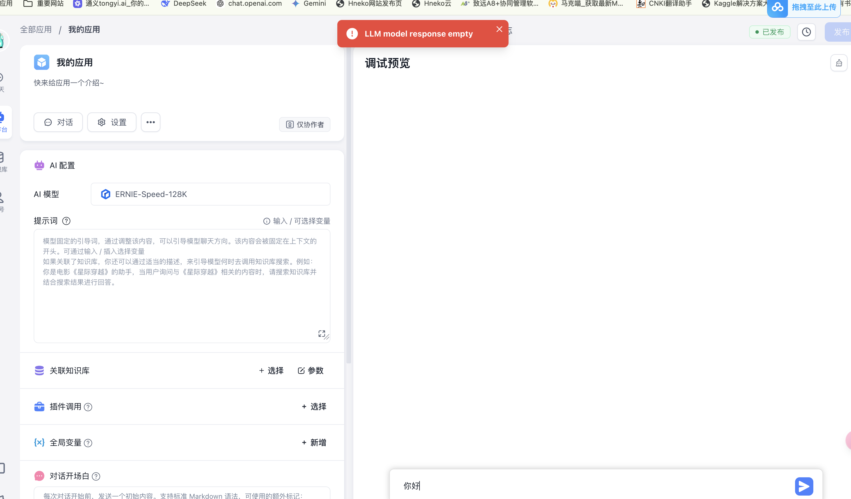 【求助贴】oneapi测试通过了,fastapi选择百度千帆的模型报错LLM respose empty,选择 qwen-2时候报错:undifined当前分组.... #426
