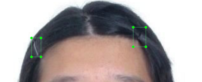 1)图片1,图片2,是训练数据集。图片3是识别结果,将头发识别成了发卡。