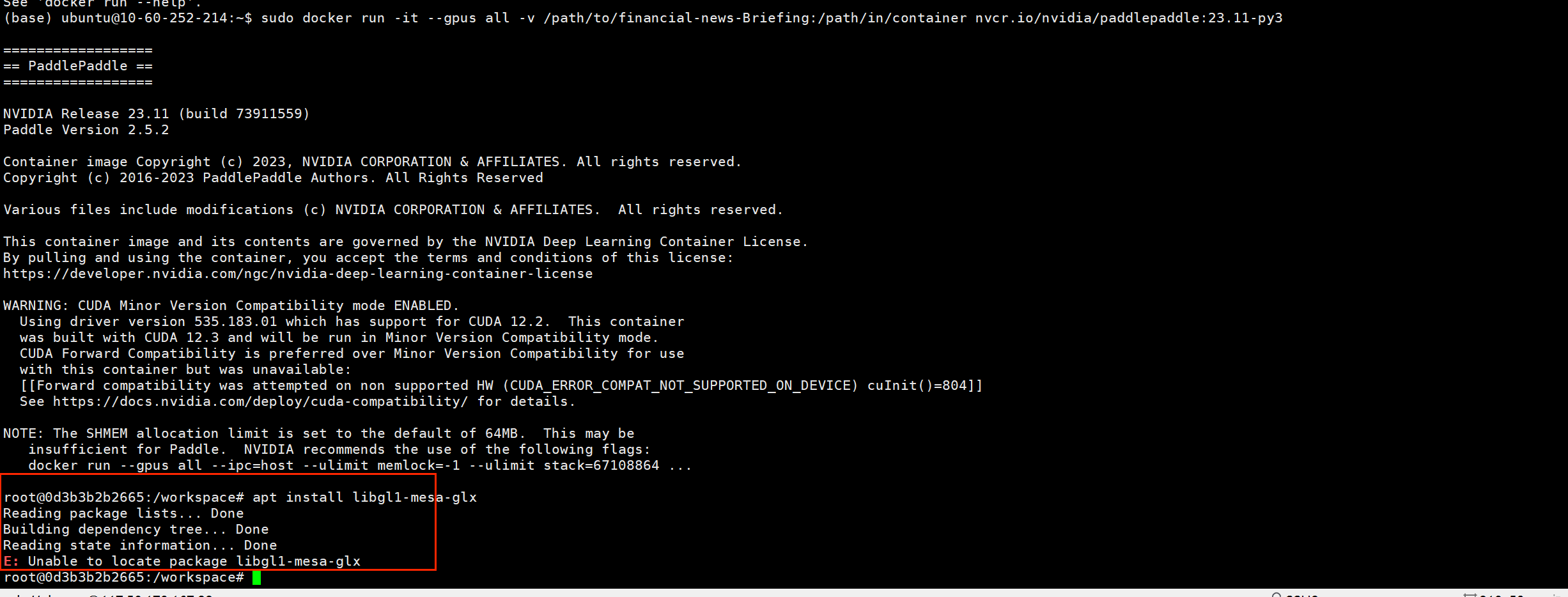 求助RAG的实时简报编写图片识别中,在linux 的docker容器安装paddleocr运行图片识别报错 #443