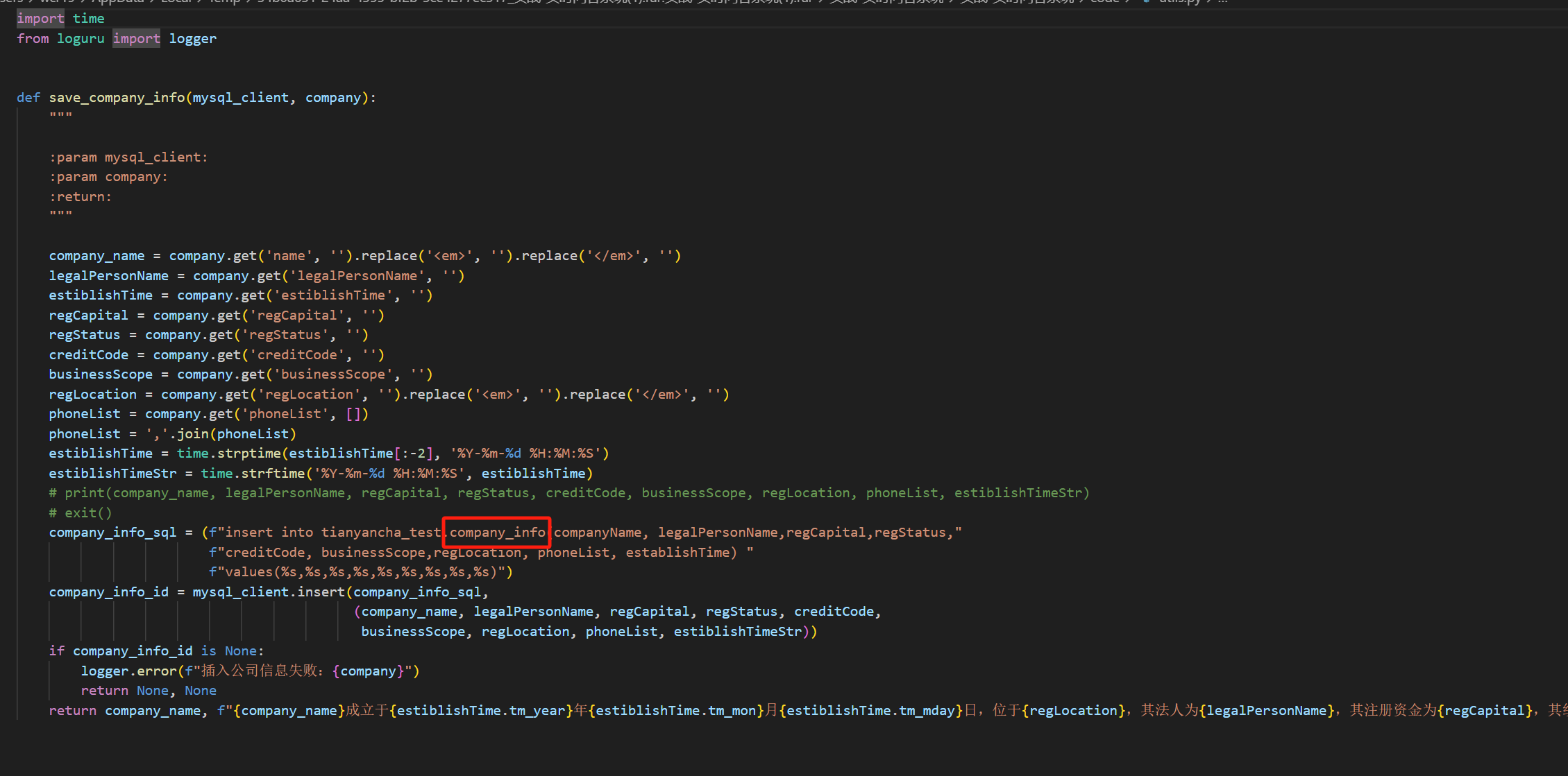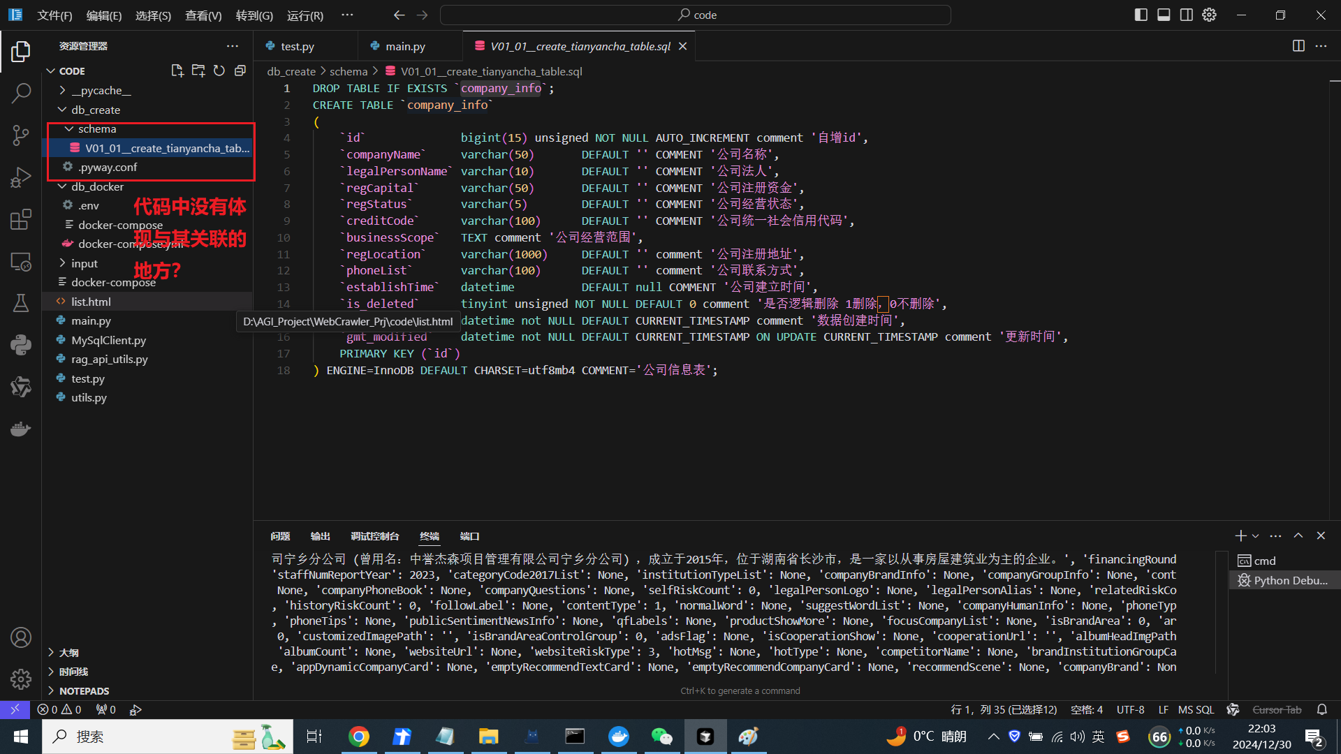 2、数据库表company_info 是如何与程序交互,交互关系不清楚