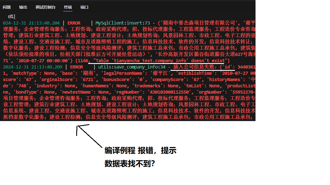3、执行教案例程编译: 网页派取成功,但是提示错误: 表格找不到?