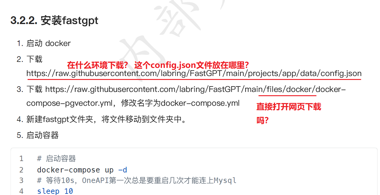 关于3.2.2. 安装fastgpt 这一节中, 需要下载两个文件 一个是config.json. 一个是docker-compose.yml;