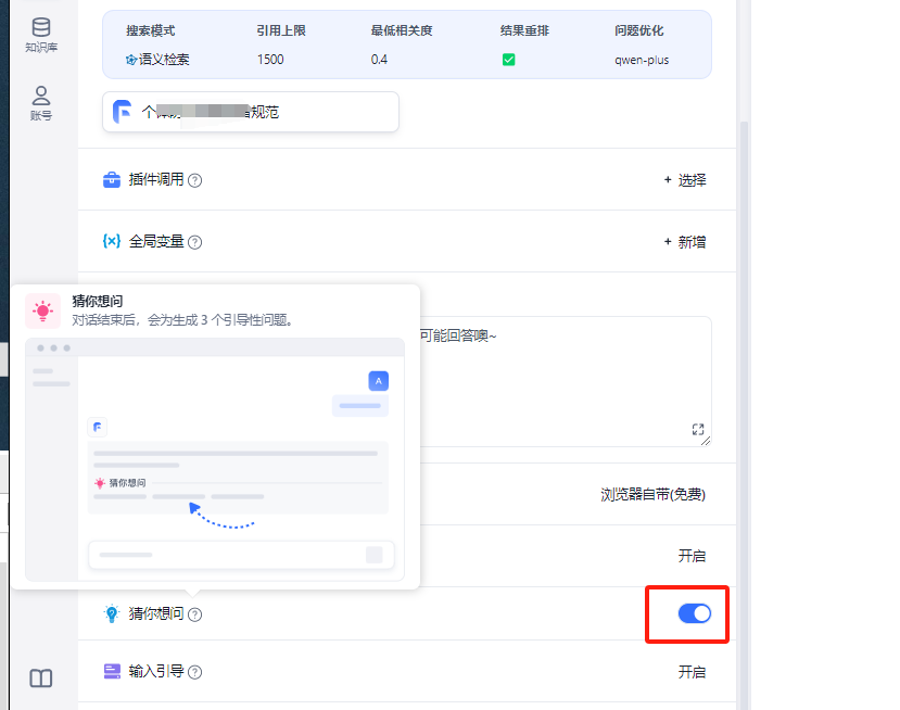 @21373287560cs 主要我想使用其他模型,而非llama-3.1-instruct,不开启“猜你想问”没问题,开启了就报这个错,感觉在哪默认了llama-3.1-instruct,想调整下