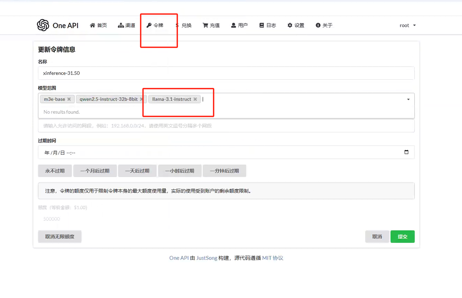 fastgpt开启“猜你想问”,实现自动推荐提示问题,界面上没有找到可配置的模型,后台直接提示llama-3.1-instruct该令牌无权使用模型