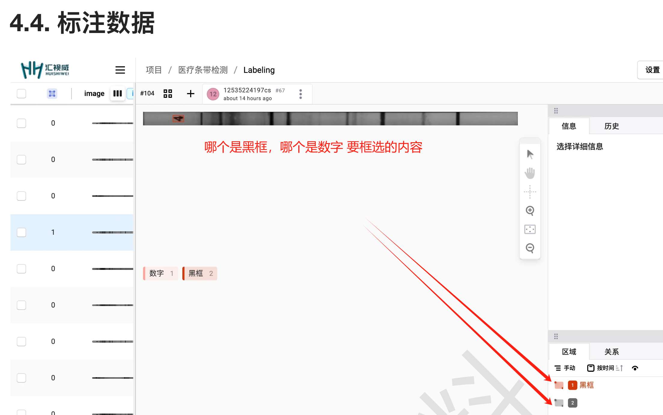 数字和黑框如何区分,你可以点击标注的框框,看数字和黑框哪一个高亮了,那么哪个就是你标注的标签。
