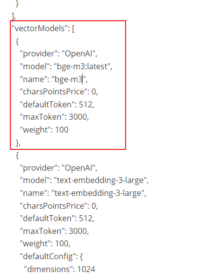方便看一下fastgpt的配置文件config.json啊, 应该是没有在fastgpt中添加相对应的索引模型