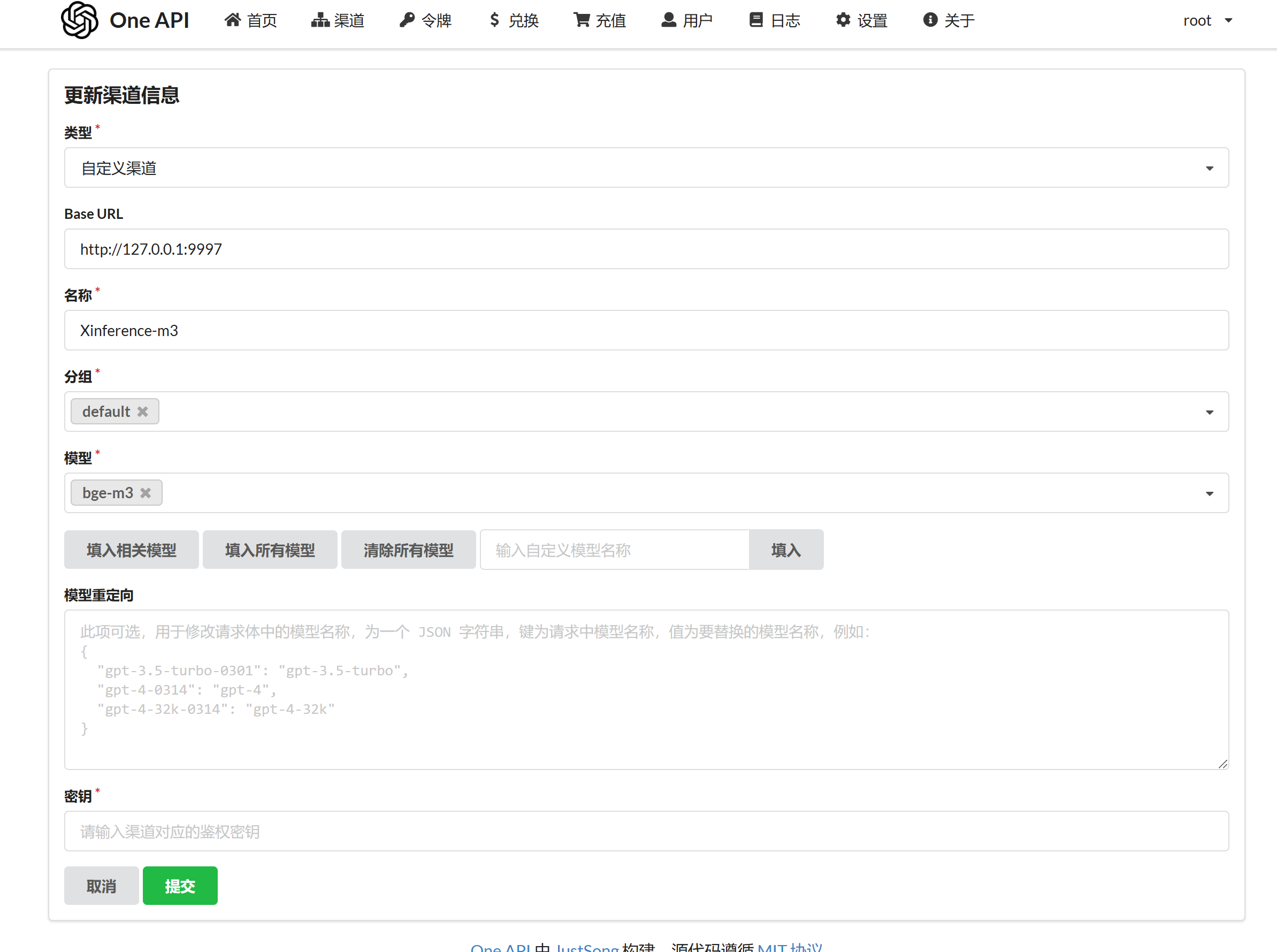 我在autoDL上部署的Xinference,并且映射到本地ip和端口,127.0.0.1:9997,模型也部署上了,但是在oneapi自定义渠道时怎么都连接不上,麻烦帮忙看看哪里设置的不对