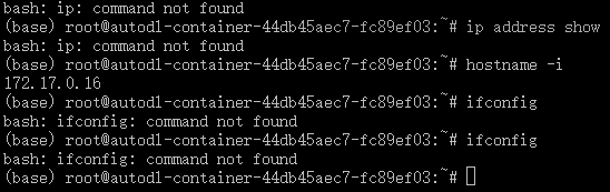 AutodDL服务器登录后无法查到ip地址。ifconfig, ip addr等命令均显示command not find. NextChat在配置时需要这个ip地址