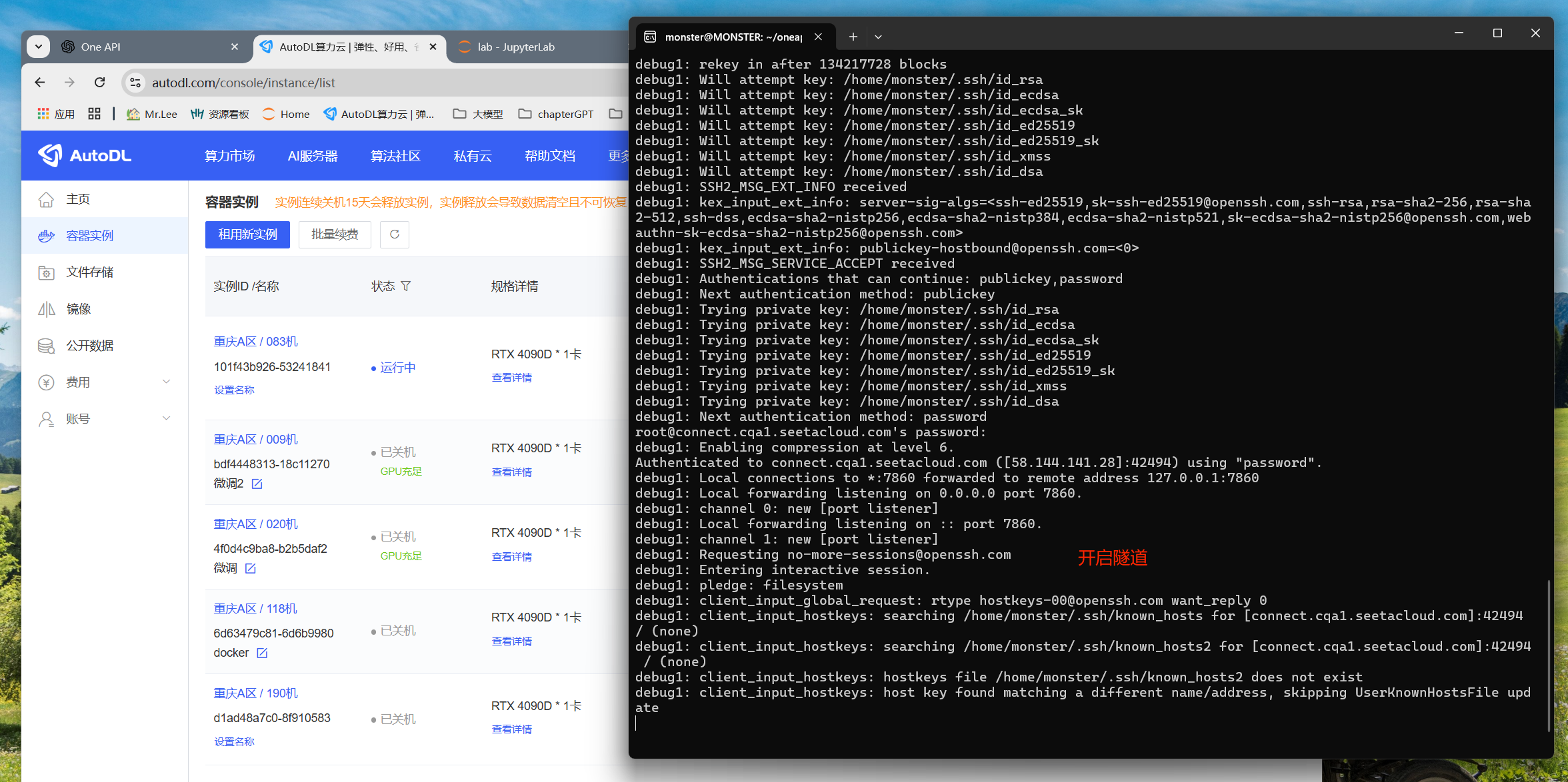 在autodl部署了模型后,需要在wsl里面输入隧道命令,是否有输入?