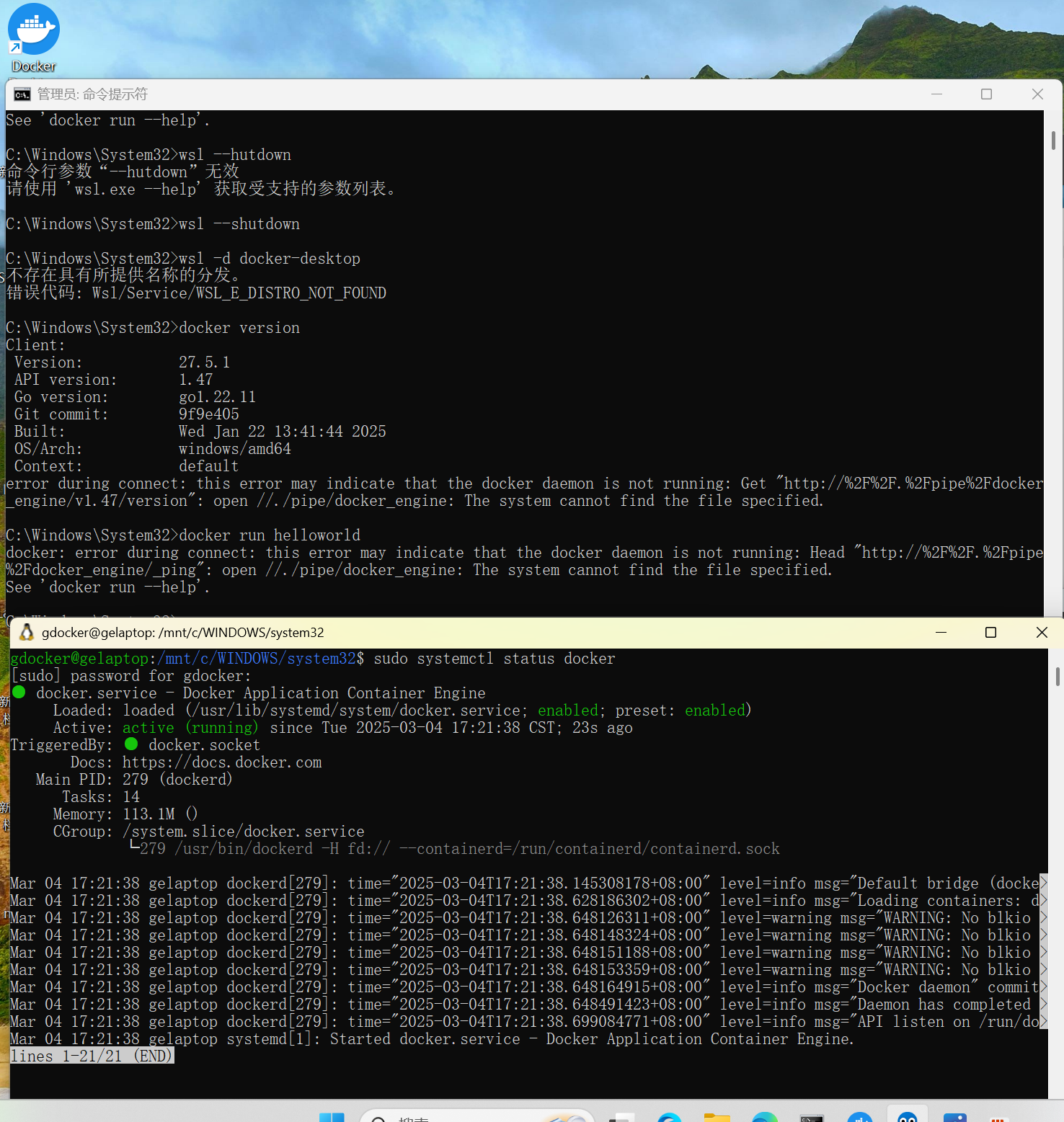 求助帖:Windows11系统 wsl 无法启动Docker #597