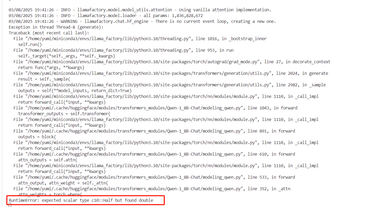 加载成功原模型【Qwen-1.8B-Chat】后,测试模型出现问题