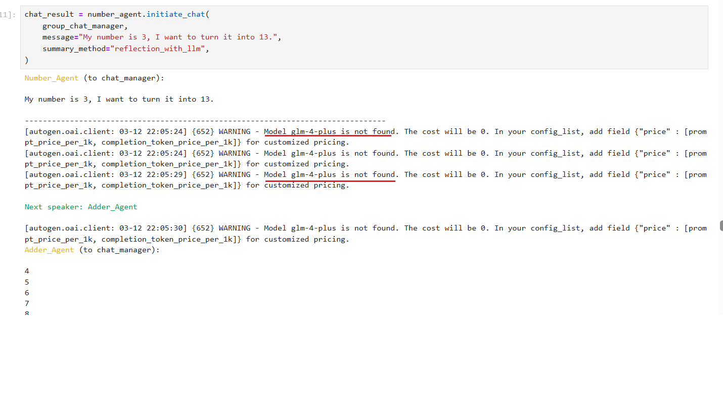 复现本课程案例过程中,发现程序正常执行,但是不停的报警告:WARNING - Model glm-4-plus is not found.