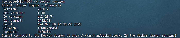 2)查看版本提示错误Cannot connect to the Docker daemon at unix:///var/run/docker.sock. Is the docker daemon running?