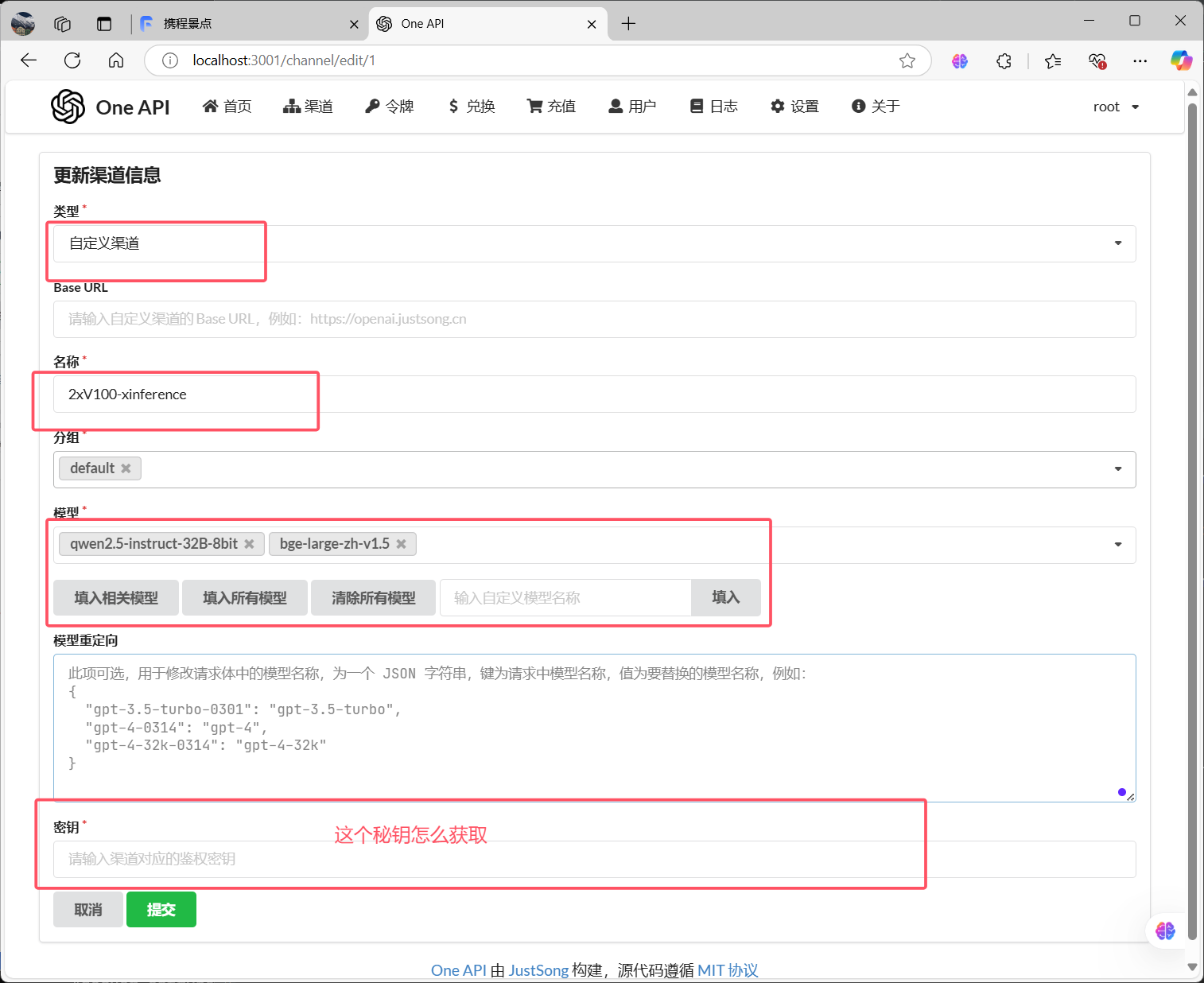 因为我们部署的xinference没有设置密钥,这个密钥可以是任意字符,直接打一个空格就行