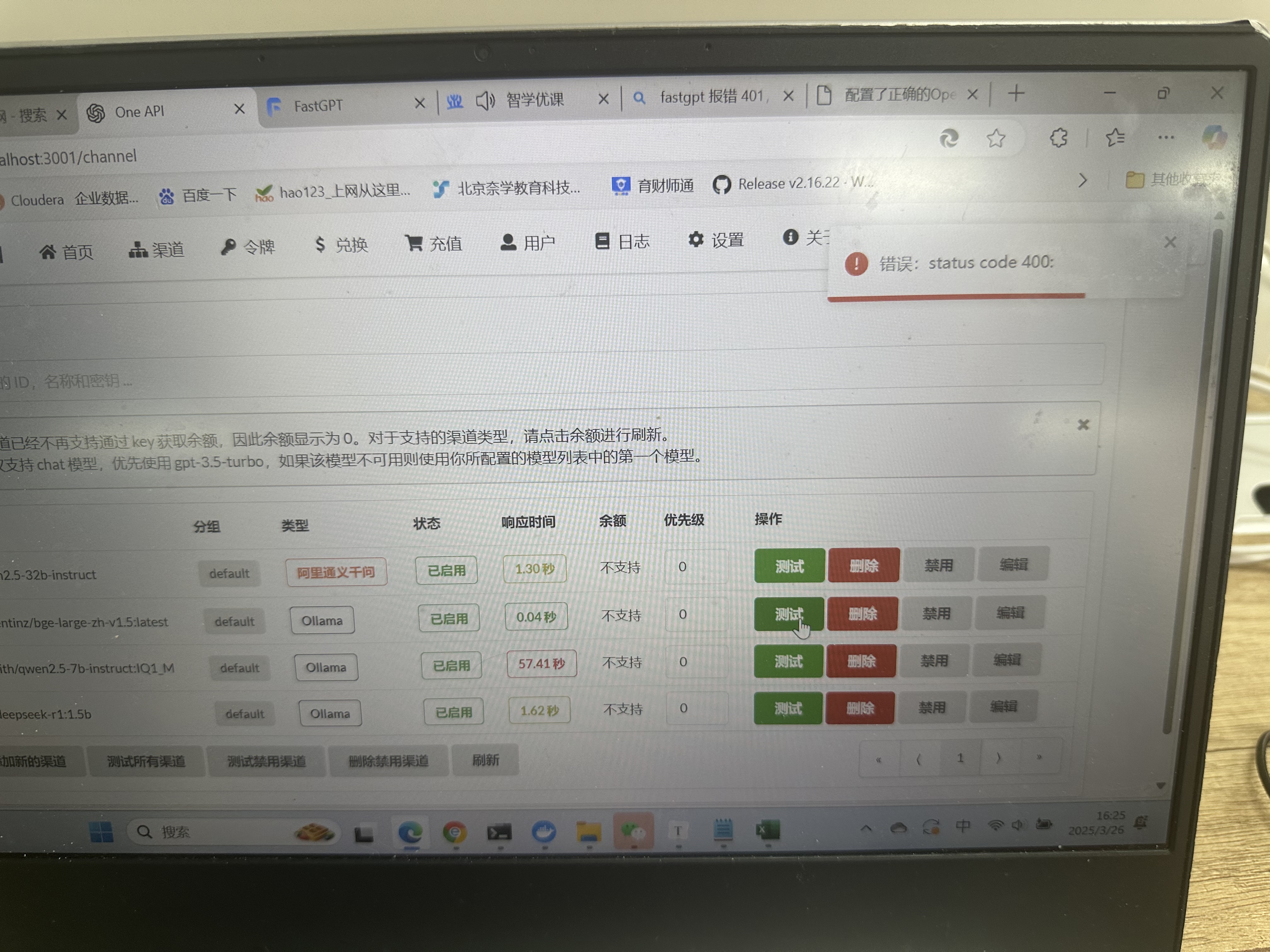 fastgpt搭建旅游景点应用,测试报错:401:无效的令牌。模型在One api测试成功,config.json也测试用过了,令牌也添加了