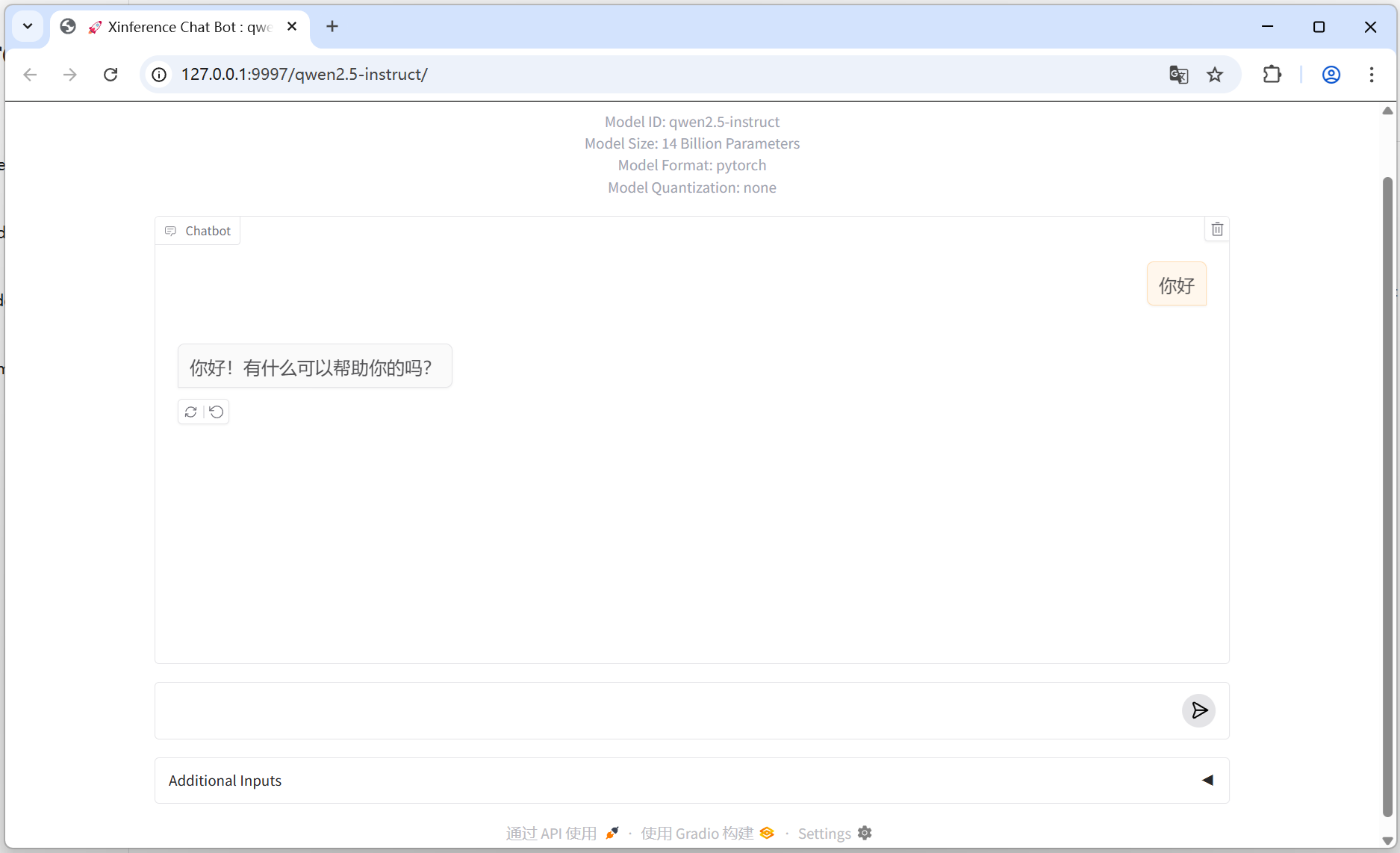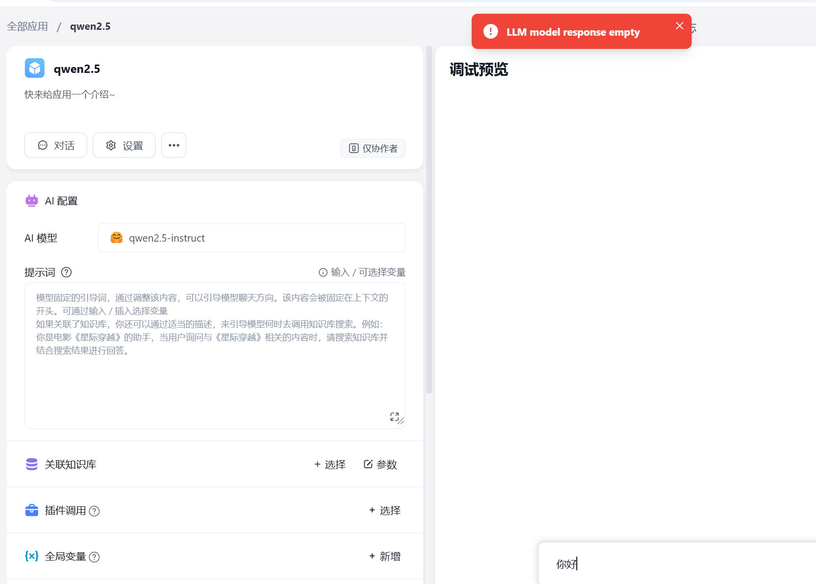 xinference里布署的qwen2.5,无论是32B还是14B,通过FastGPT调用都会报错,如图。但是通过xinference页面测试是正常。