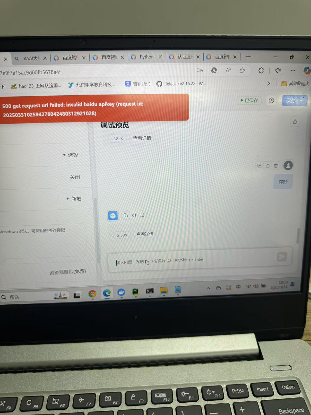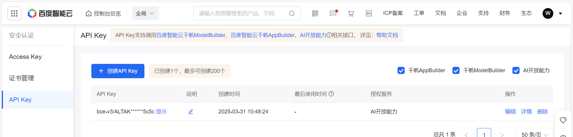 https://cloud.baidu.com/doc/WENXINWORKSHOP/s/Um2wxbaps#%E6%AD%A5%E9%AA%A4%E4%BA%8C-%E8%8E%B7%E5%8F%96api-key 老师,我在这个页面注册的key ,测试bge-large-zh 在应用上和OneAPI上一直报无效的百度 api key。按理说,这是个索引模型,在OneAPI上应该报其他错啊