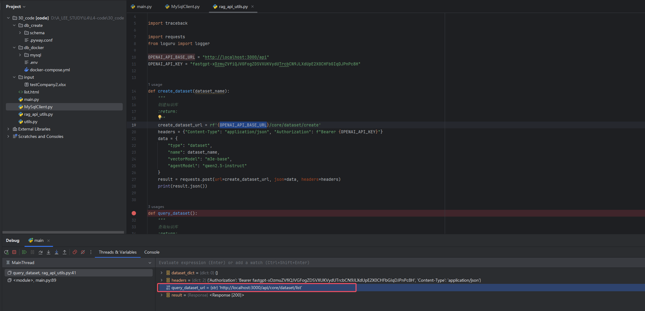 两个问题:1. query_dataset_url在我本地是http://localhost:3000/dataset/list,原代码里面的是http://localhost:3000/api/core/dataset/list,是否需要修改?2.OPENAI_API_KEY需要修改吗,在哪里获取?